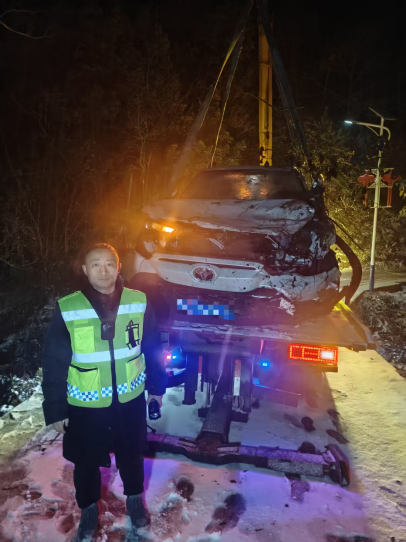 中国太保产险湖北分公司查勘员王勇接到电话后当即回应:“您别急,我们马上出发。”随后,他迅速整理头灯、救援设备等装备,顶着凛冽风雪赶往事故现场。